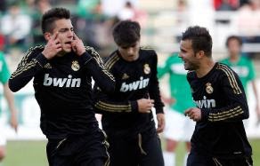 | Joselu celebrando el gol junto a sus compañeros fotografía realmadrid.com |
