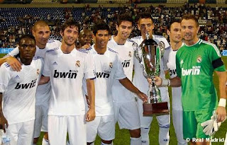Penúltimas pruebas de Mou de cara al comienzo de las competiciones oficiales. El portugués, de nuevo hizo varias probaturas, sacando dos equipos diferentes en cada tiempo. En esta ocasión, Mou dejo a la columna principal del equipo en Madrid (Iker, Ramos, Alonso y Cristiano), y en la primera mitad y salvo excepciones, presento un equipo lleno de jugadores llamados a pelear por un hueco en el once inicial. El equipo de los primeros 45 minutos, estuvo espeso en el juego, ante un Hércules bien situado y ambicioso. Al descanso, el equipo se fue con un 1-0 en contra, tras un saque de falta en el que Adán midió mal su salida y el balón acabo en el fondo de la portería que defendía. En la segunda mitas, y como viene siendo habitual en estos partidos de pretemporada, Mourinho saco una artillería mas pesado, y eso se vio reflejado en el juego del equipo y en el marcador final. La entrada de Van der Vaart le dio mas sentido al juego colectivo del equipo, y el juego de los nuestros fue mas fluido y rápido, generando varias ocasiones de gol. El gol del empate llegaría en el minuto 55, cuando Khedira ponía un balón largo al centro del área, en donde Benzema, después de controlar con el pecho, remataba a las redes herculanas. El Madrid funcionaba mucho mejor que en la primera mitad, y creaba numerosas ocasiones de gol. Pero el segundo tanto no llegaría hasta 20 minutos después, cuando Pedro León daba un pase profundo a Di María, este se marcha en velocidad, burla al portero en la salida y marca el 1-2. Y en el 85, un Benzema que hoy estaba enchufado al partido, ponía el definitivo 1-3. Una absurda reacción de Pedro León, dejo al equipo con 10 jugadores, al ser expulsado por una reacción violenta sobre un contrario. Pero ya no quedaba mucho mas, y el Madrid se alzaba con el trofeo. Destacar que Mourinho dio oportunidad a varios canteranos, como Juanan, Juanfran , Mateo y Joselu , además del portero Adán que ya forma parte de la primera plantilla.