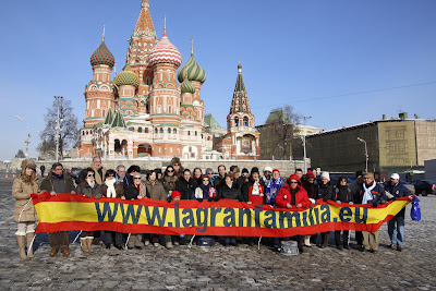 | Foto del grupo que viajó a Moscú, en la Plaza Roja, con la Iglesia de San Basilio al fondo |