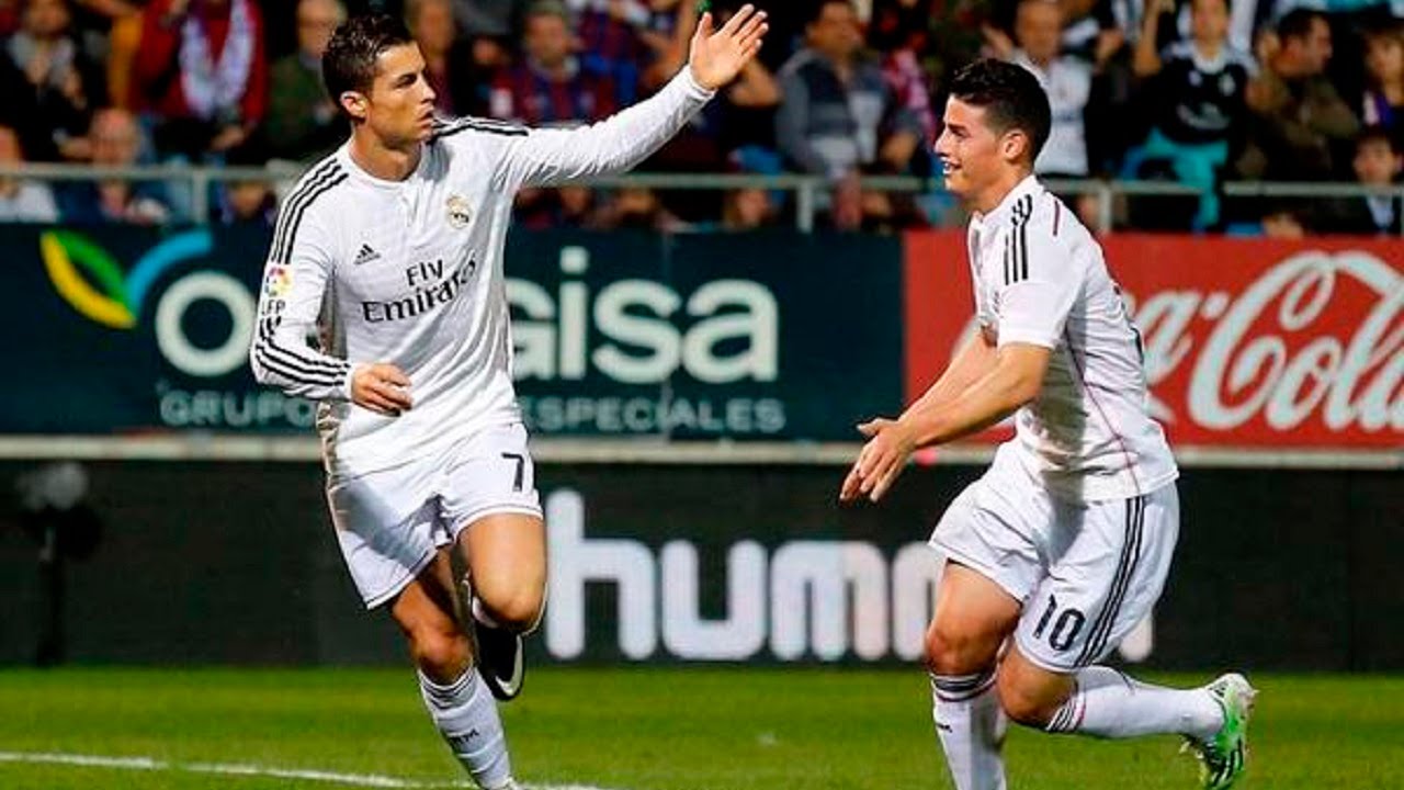 » En la imagen, Cristiano y James en la celebración del 0-2″