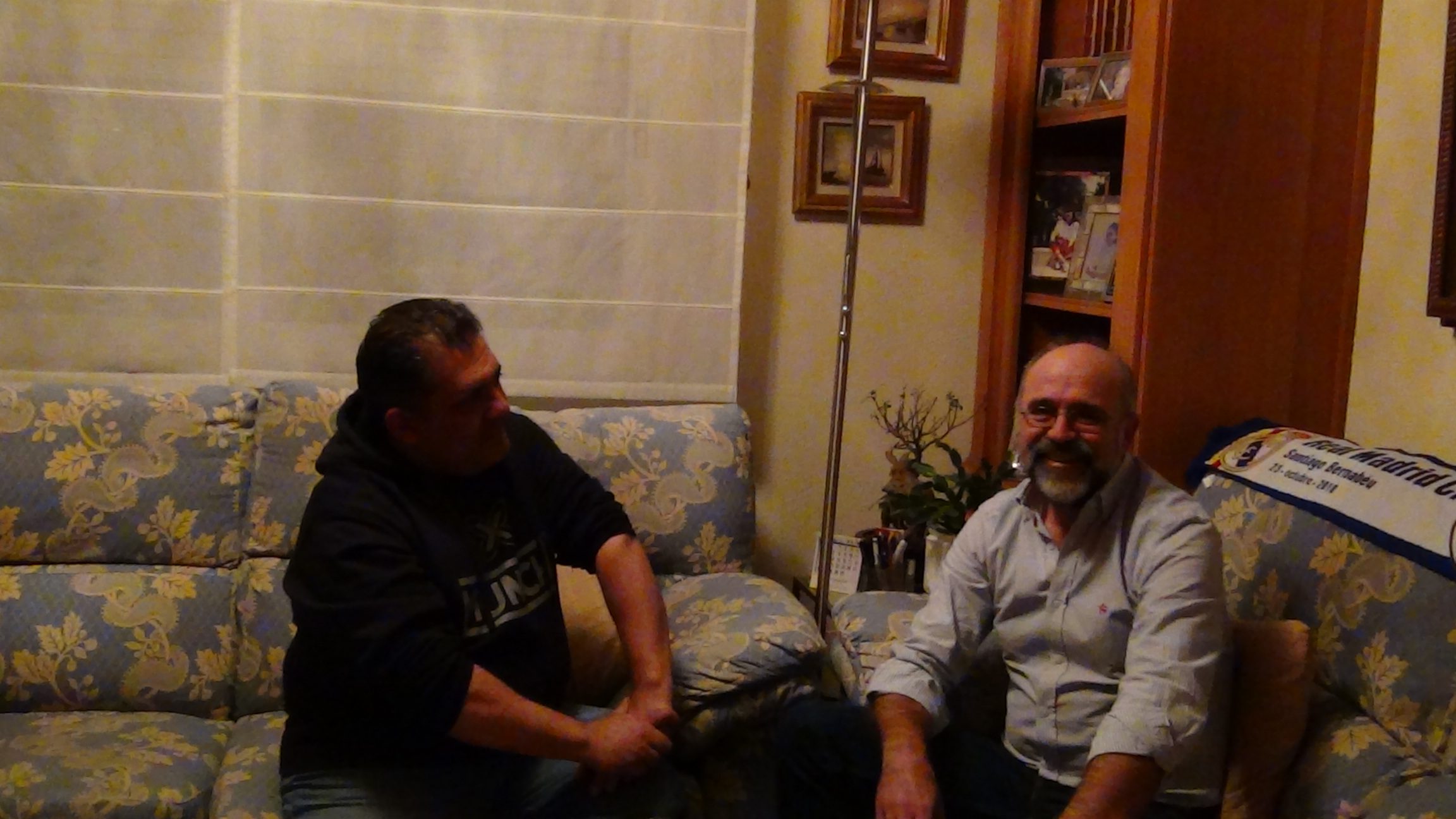 Por fin!!!!. No os lo creeréis, pero desde que empezamos, primero con nuestro Blog hace más de 10 años y luego ya con nuestra Web, llevaba intentando esta entrevista con nuestro Presi. La realizamos ya hace años en un hotel de Milán en un viaje de la Peña, y meses más tarde, ya no recuerdo si en nuestra antigua sede o en casa de Gerardo. Pero entonces el sistema de la cámara que tenía era otro, y los archivos que admitía el Blog también, y una vez grabadas no había manera de subirlas a nuestro entonces querido Blog. Pero por fin la tenemos. El miércoles 31 de octubre y mientras nuestro Madrid jugaba su primer partido en Copa del Rey de esta temporada, nuestro Presi nos recibía en su casa para realizar la entrevista. Le invité que nos volviese a recordar como se hizo madridista y como formó la Peña, cosas que muchos de vosotros ya conocéis, pero que seguro que muchos de los que siguen nuestra Web, o los compañeros y amigos que están lejos de Madrid no han tenido ocasión de escuchárselo. Hablamos también de los avatares de la Peña, de su funcionamiento y de como hemos ido creciendo, así como de la actualidad del equipo.