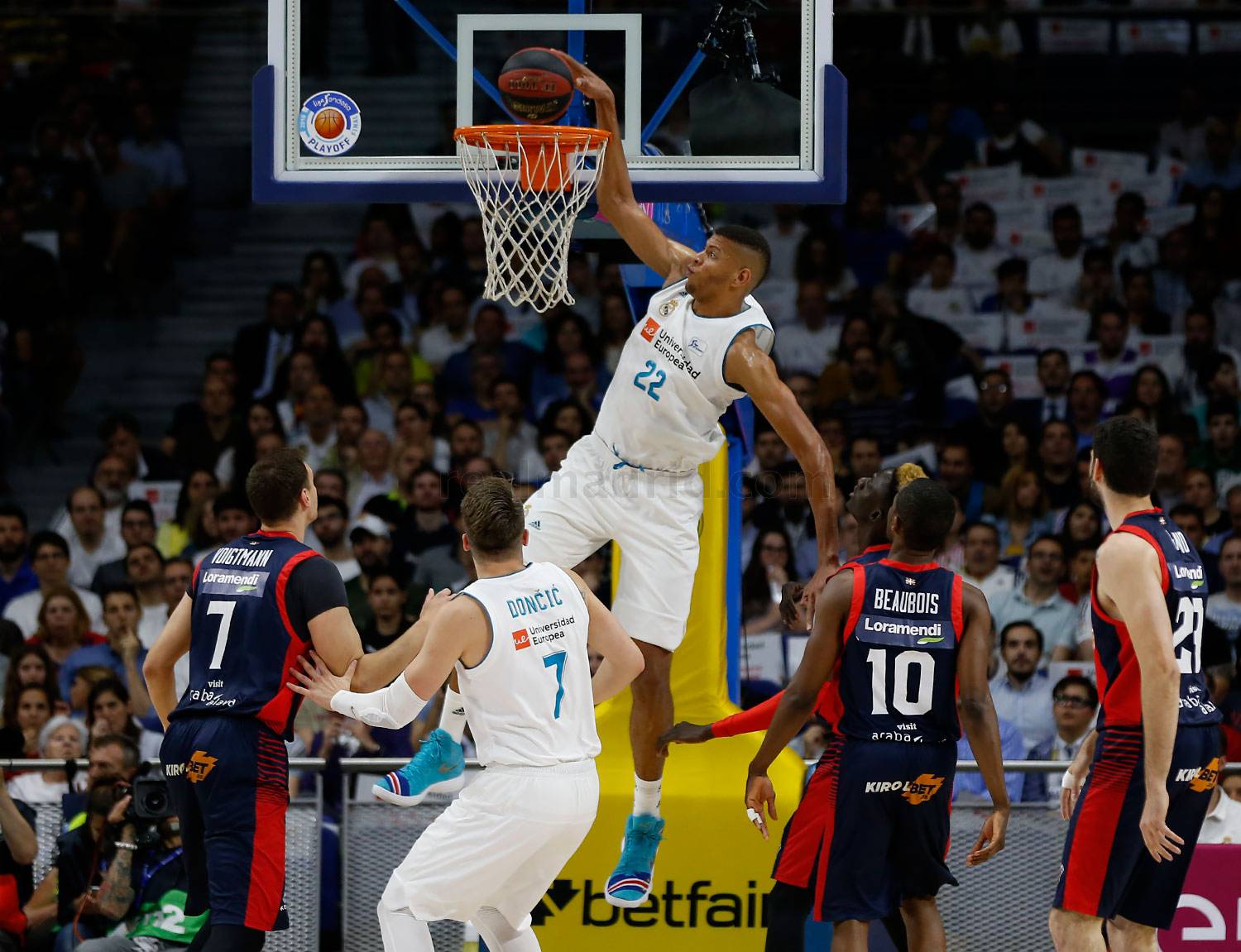Y por fin llegó el partido que resultaría definitivo, más de lo mismo en este Real Madrid en modo “abusón”, que no vale con la intimidación de Tavares, pues pongo a Facun, Causeaur y Rudy a asfixiar a sus exteriores, que ellos aciertan en el triple, pues sale Rudy (otra vez) para anotar 17 puntos en un cuarto y dejar al mínimo las expectativas locales. Ni siquiera el intento de llevar el partido a la pelea y la protesta les dio sus frutos. Es tal la superioridad en plantilla del Madrid que incluso uno de los mejores jugadores de la última Eurocopa de Selecciones (Randolph) ni siquiera ha jugado los dos últimos partidos al no estar en forma, ahí estaban otros compañeros para suplirle y un entrenador que supo verlo.