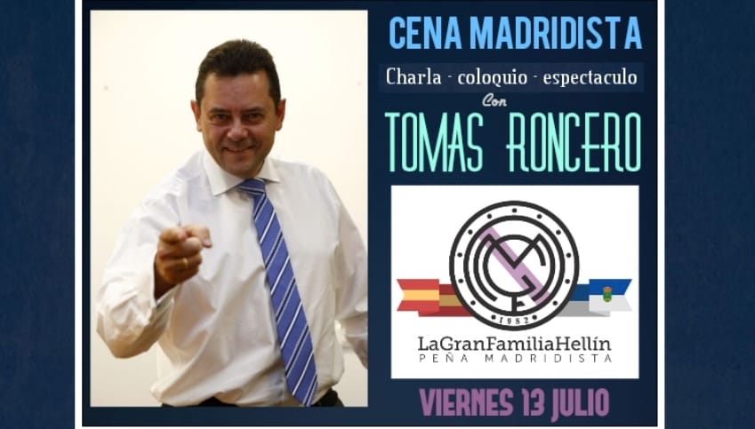 Por otro lado, el próximo día 13 de julio la sección tiene otro evento en donde pretendemos disfrutar tanto o más que esa inolvidable noche del día 16 de junio. Se trata de una cena coloquio con la presencia del periodista y madridista Tomás Roncero.