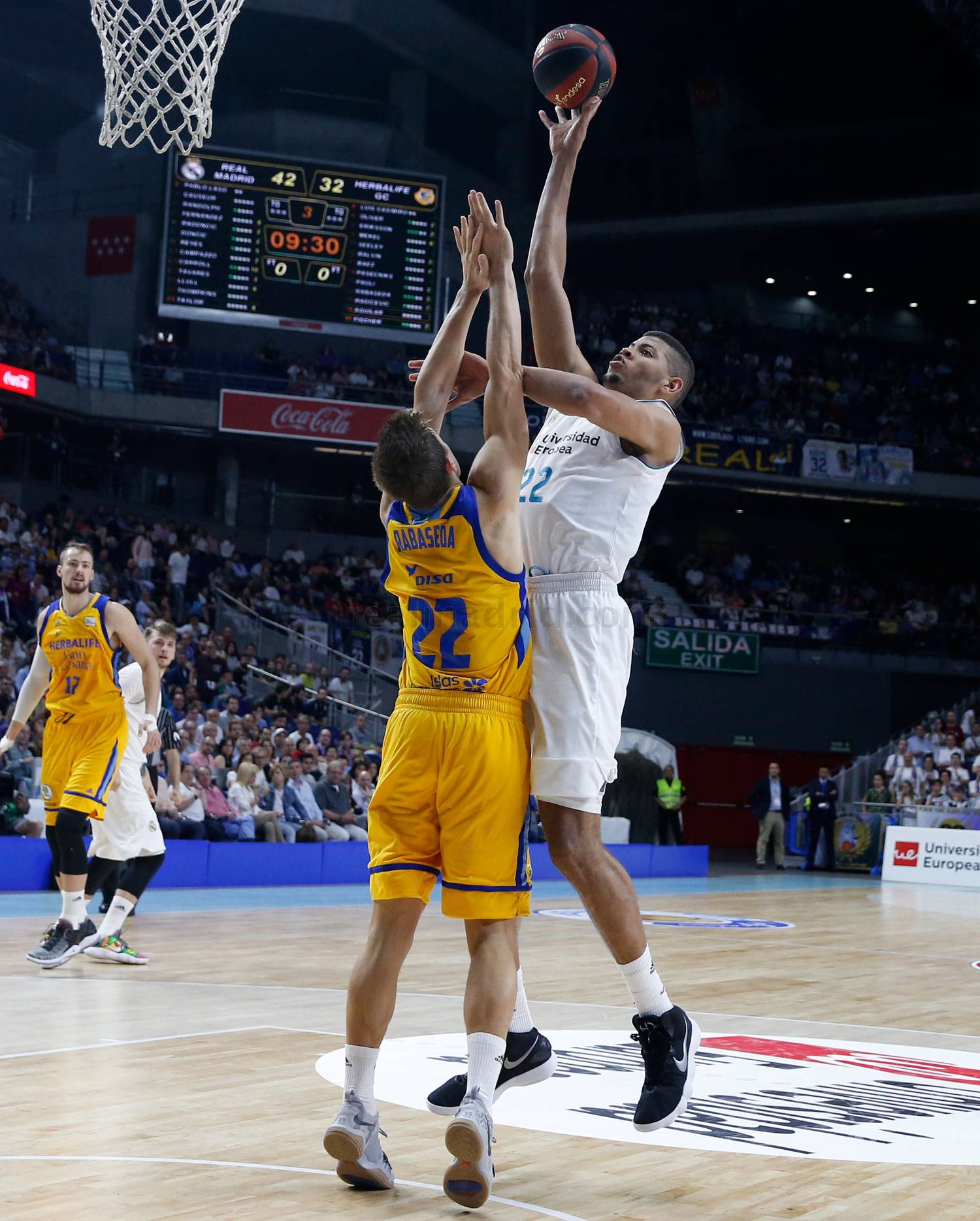 Pero la bestia despertó en el segundo cuarto. Todos sus déficits del inicio desaparecieron con un quinteto en pista renovado. Llull, Carroll y Rudy abrieron la defensa grancanaria a base de triples mientras que por dentro la pareja Radoncic-Tavares solventó los problemas con el rebote. Eso y una mayor agresividad permitió al Real Madrid dar la vuelta al encuentro. El escolta norteamericano comandó, con 10 puntos, un parcial de 28-10 en 10 minutos excepcionales, pasando de perder por 11 a irse 10 arriba al descanso con el 42-32.