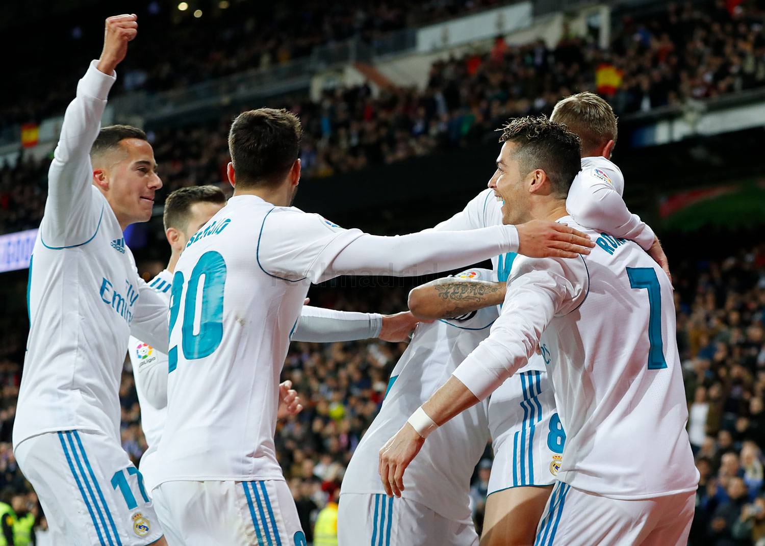 Real Madrid: Keylor; Carvajal, Nacho, Varane, Marcelo; Lucas V. , Kovacic, Kroos, Asensio; Benzema y Cristiano. Sustituciones: Min.71, Bale y Modric por Asensio y Kovacic, y en el 83, Isco por Benzema.