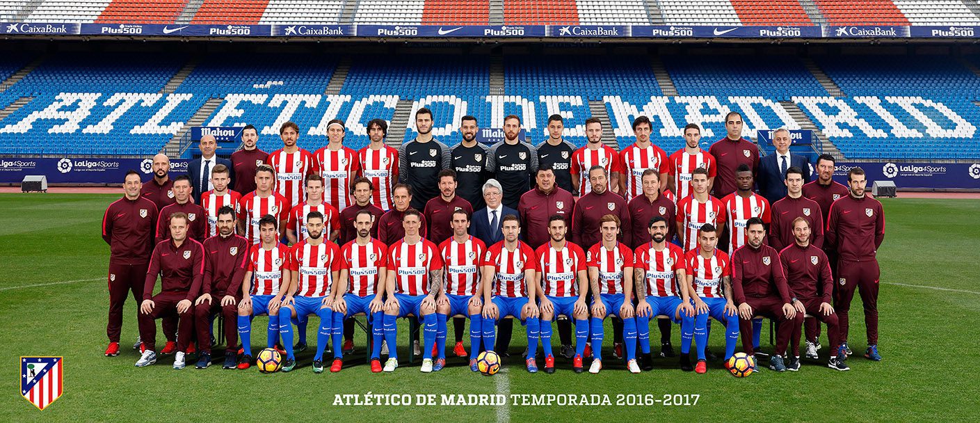 El club colchonero fue fundado el 26 de abril de 1903. Su uniforme tradicional es la camiseta a rayas verticales rojas y blancas, y el calzón azul. Su estadio, es el Vicente Calderon, inaugurado el 2 de octubre de 1966, con capacidad para 54.907 espectadores. La próxima temporada el Atlético ya jugará en su nuevo estadio, el Wanda Metropolitano. Su presidente es Enrique Cerezo, y su entrenador Diego Simeone.