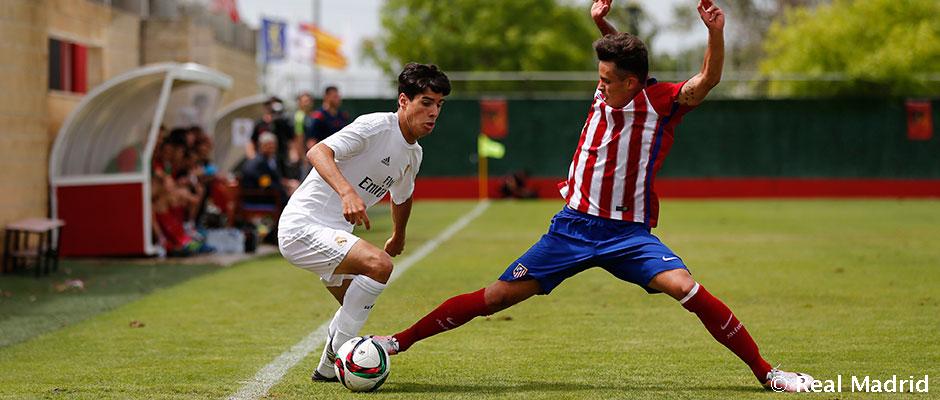 No pudieron los hombres dirigidos por Solari mantener un resultado que les era favorable al final de los primeros 45 minutos por 3-1. Empezó adelantándose el conjunto colchonero a los 13 minutos con un gol de Zaka, pero no tardó el equipo madridista en dar respuesta, ya que cinco minutos más tarde Garci empataba para los merengues. Todavía la cosa se puso mejor, cuando dos minutos después Mario marcaba de cabeza a pase de Acharaf, poniendo en ventaja al juvenil madridista. Pero ahí no iba a terminar los mejores momentos merengues, ya que en el 27, Mario de penalti le daba una ventaja tranquilizadora al trasformar un penalti con el que habían sido castigados los colchoneros. Con 3-1 se llegó al descanso.