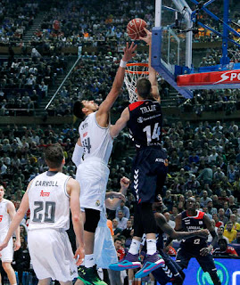 | Ayón intenta taponar el tiro de Tellie. fotografía web solobasket.com |