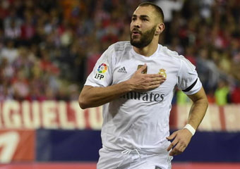 | Benzema celebra su gol señalándose el escudo. fotografía marca.com |