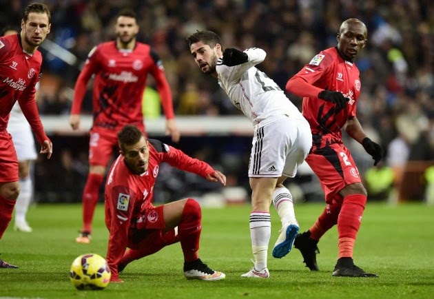 Real Madrid: Íker; Coentrão, Nacho, Varane, Carvajal; Isco, Kroos, Khedira; Cristiano, Benzema y Bale. Sustituciones: En el descanso entra Jesé por Khedira; Min.68, Illarra por Isco, y en el 73, Chicharito por Benzema.