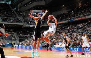 | Sergio Llull lanza a canasta en complicada posición fotografía realmadrid.com |
