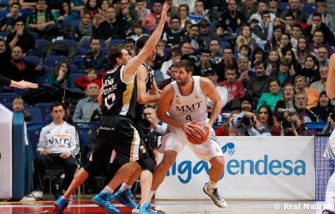 Sergi Llull (21 puntos) y Felipe Reyes (18 puntos y 9 rebotes) fueron los artífices de la décima victoria blanca en otras tantas jornadas de la ACB. En un duro partido, Monbus aguantó 25 minutos al actual campeón, demostrando que es un buen equipo. Y fue en ese minuto 25 cuando Felipe y Sergi, «tanto monta – monta tanto» se echaron al equipo a las espaldas para resolver el choque. Montxo López, entrenador de Río Natura Monbus, había calificado al Real Madrid como el mejor equipo actual fuera de la NBA. Equipo al que ganó la temporada pasada (61-64) cuando Salah Mejri jugaba con los ahora antiguos compañeros. El partido comenzó con buenas defensas por ambos equipos y mucha lucha en las zonas. Por eso, a los cinco minutos solo Sergi «correcaminos» Llull había anotado en dos penetraciones (4-0). Un triple de Xhantopoulos en el minuto cinco y medio fue respondido de inmediato por otro de Llull (7-3) y comenzaron los cambios. Monbus estaba haciendo una parte del trabajo bien (defensa) pero otra mal (ataque). Con poco acierto en tiros (19% en tiros de 2), eso sí, bastante forzados llegó al final del primer cuarto perdiendo por tan solo 2 puntos, 11-9. El Madrid también estaba bastante atascado en ataque y solo sumaba Llull y dos tiros libres de Reyes y Mirotic (uno cada uno).