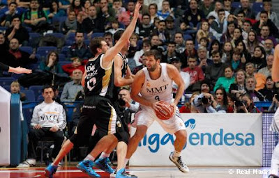 | Felipe Reyes ante dos rivales fotografía realmadrid.com |
