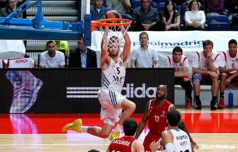 | Sergio Llull lanza a canasta en complicada posición fotografía realmadrid.com |
