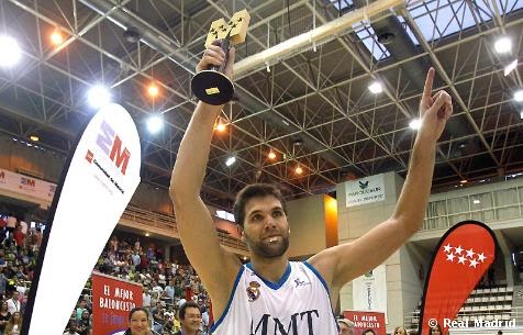 | Felipe Reyes levantando el trofeo que le acredita como campeones fotografía realmadrid.com |