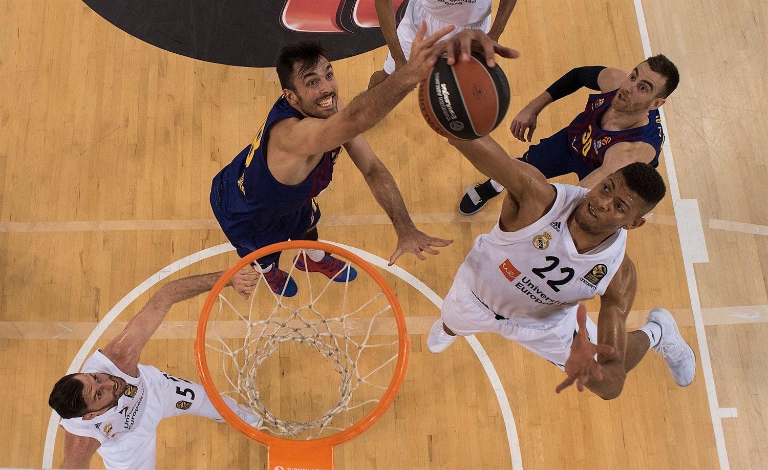 70 Real Madrid (17+20+14+19): Causeur (2), Tavares (4), Deck (2), Randolph (12), Llull (9) -cinco inicial- Prepelic (-), Taylor (2) y Reyes (4), Campazzo (6), Ayón (4), Carroll (10), Rudy (15)