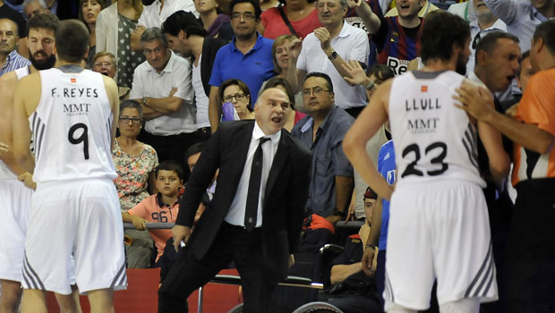 Pablo Laso da instrucciones a sus jugadores durante un partido. |