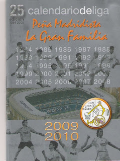 Ya disponemos del Calendario de Liga 2009/10 que todos los años edita nuestra peña. Esta es la 25 edición, queda ya lejos ese año 1984 cuando sacamos nuestro primer calendario y los repartimos entre nuestros peñistas y demás amigos madridistas. En el calendario aparecen todos los partidos de liga de la Primera División, los partidos a disputar por el Real Madrid Castilla, los de nuestro equipo de baloncesto, así como el calendario de fechas de la Copa del Rey, Champions y los partidos a disputar por nuestra selección nacional. También podréis encontrar la ficha de los jugadores de nuestra primera plantilla, cuerpo técnico y presidente. Encontraras también unos palabras escritas para nuestro calendario por parte del periodista Tomas Roncero y el Gerente Multimedia del Real Madrid, Javier Palomino.