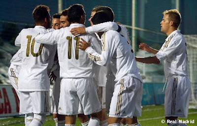 | Los jugadores del Castilla celebrando un gol en la tarde de ayer fotografía realmadrid.com |
