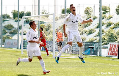 | Joselu celebrando el gol que le dio los tres puntos al Castilla fotografía realmadrid.com |