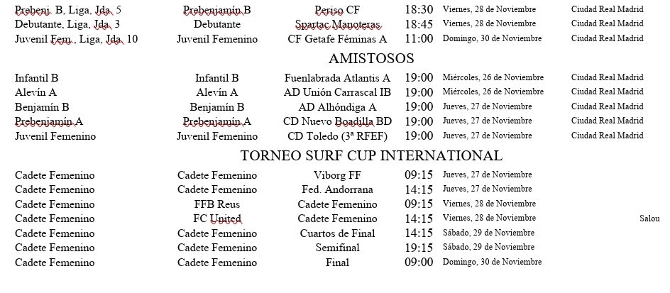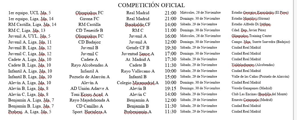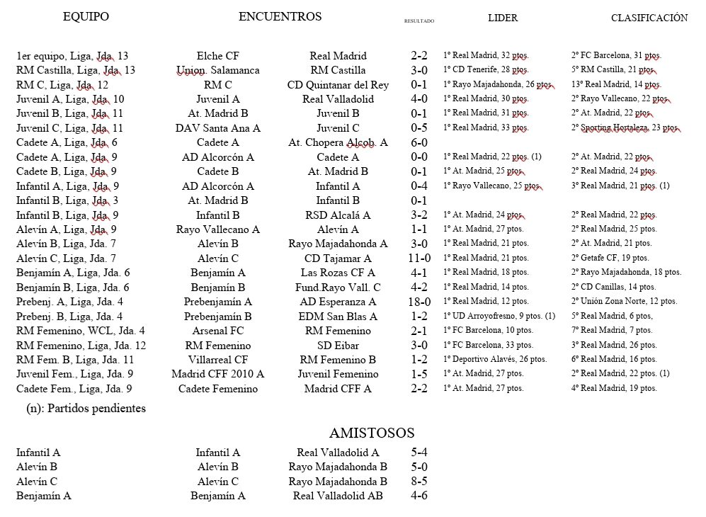 Os dejamos los resultados y horarios de los próximos partidos, destacando los del Real Madrisd Femenino en todas sus categorías, así como los de la cantera masculina, desde el Real Madrid Castilla al Prebenjamín.
