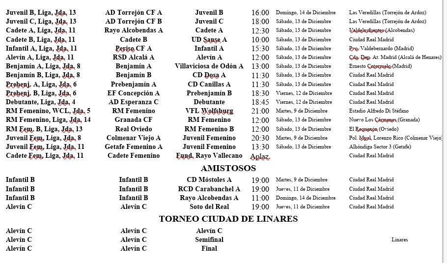 Os traemos los resultados y horarios de los próximos partidos de nuestros equipos, destacando los del Real Madrid Femenino en todas sus categorías, así como los de la cantera masculina, desde el Real Madrid Castilla al Prebenjamín.