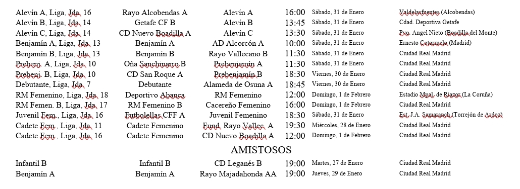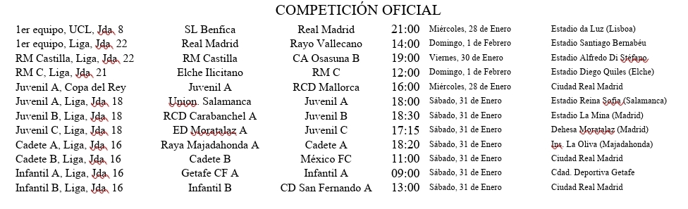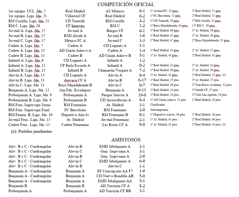 Os traemos los resultados y horarios de los próximos partidos de nuestros equipos, destacando los del Real Madrid Femenino en todas sus categorías, así como los de la cantera masculina, desde el Real Madrid Castilla al Prebenjamín.