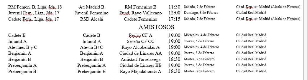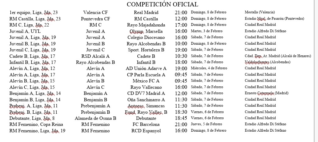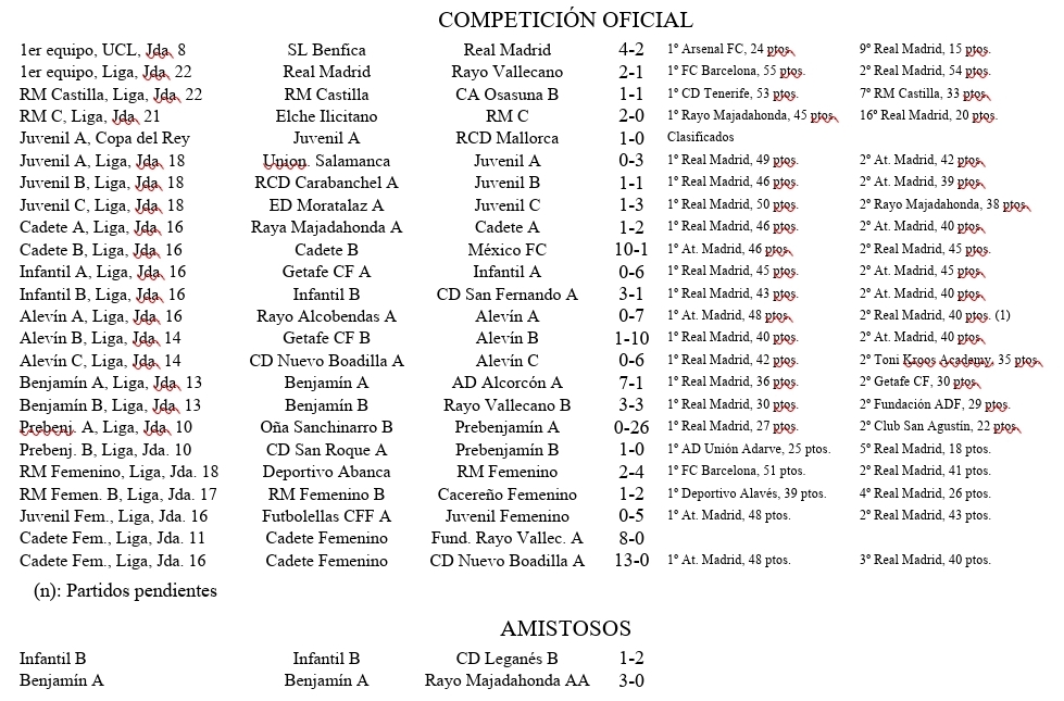 Os traemos los últimos resultados y los horarios de los próximos partidos de nuestros equipos, destacando los del Real Madrid Femenino en todas sus categorías, así como los de la cantera masculina, desde el Real Madrid Castilla al Prebenjamín.