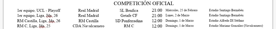 Os traemos los últimos resultados de nuestros equipos y los horarios de los próximos partidos, destacando los del Real Madrid Femenino en todas sus categorías, así como los de la cantera masculina, desde el Real Madrid Castilla al Prebenjamín.