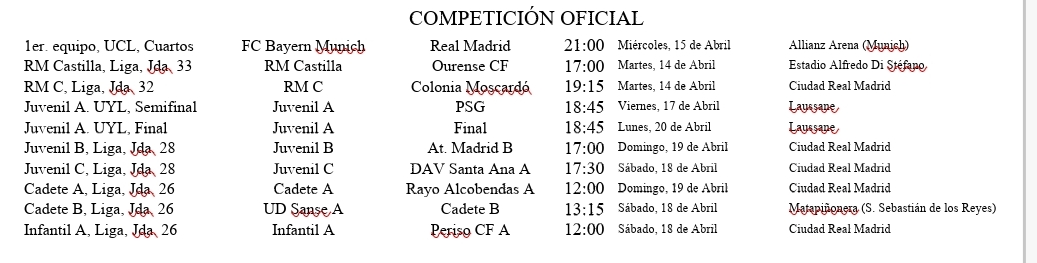 Os traemos los últimos resultados y horarios de los próximos partidos de todos nuestros equipos, destacando los del Real Madrid Femenino en todas sus categorías, así como los de la cantera masculina, desde el Real Madrid Castilla al Prebenjamín.