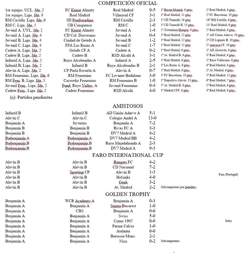 Os traemos los resultados y horarios de los partidos del último fin de semana, destacando los del Real Madrid Femenino en todas sus categorías, así como los de la cantera masculina, desde el Real Madrid Castilla al Prebenjamín.
