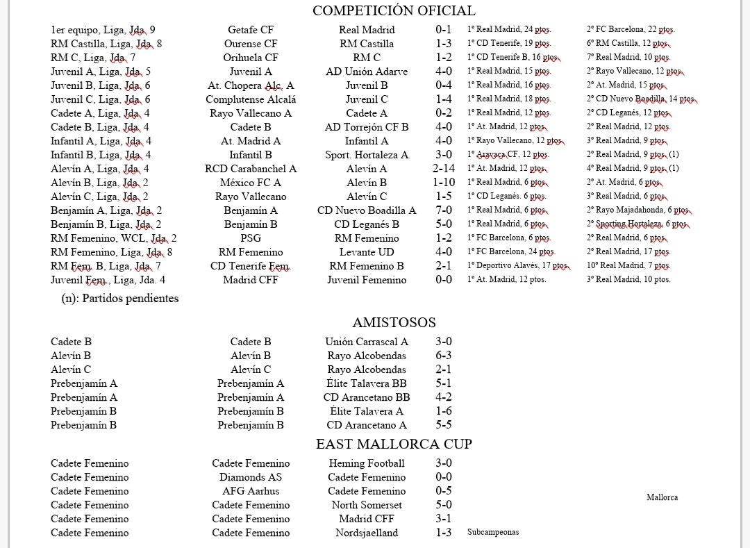 Os traemos los resultados y próximos horarios de los partidos del Real Madrid Femenino en todas sus categorías, así como de la cantera masculina, desde el Real Madrid Castilla al Prebenjamín.