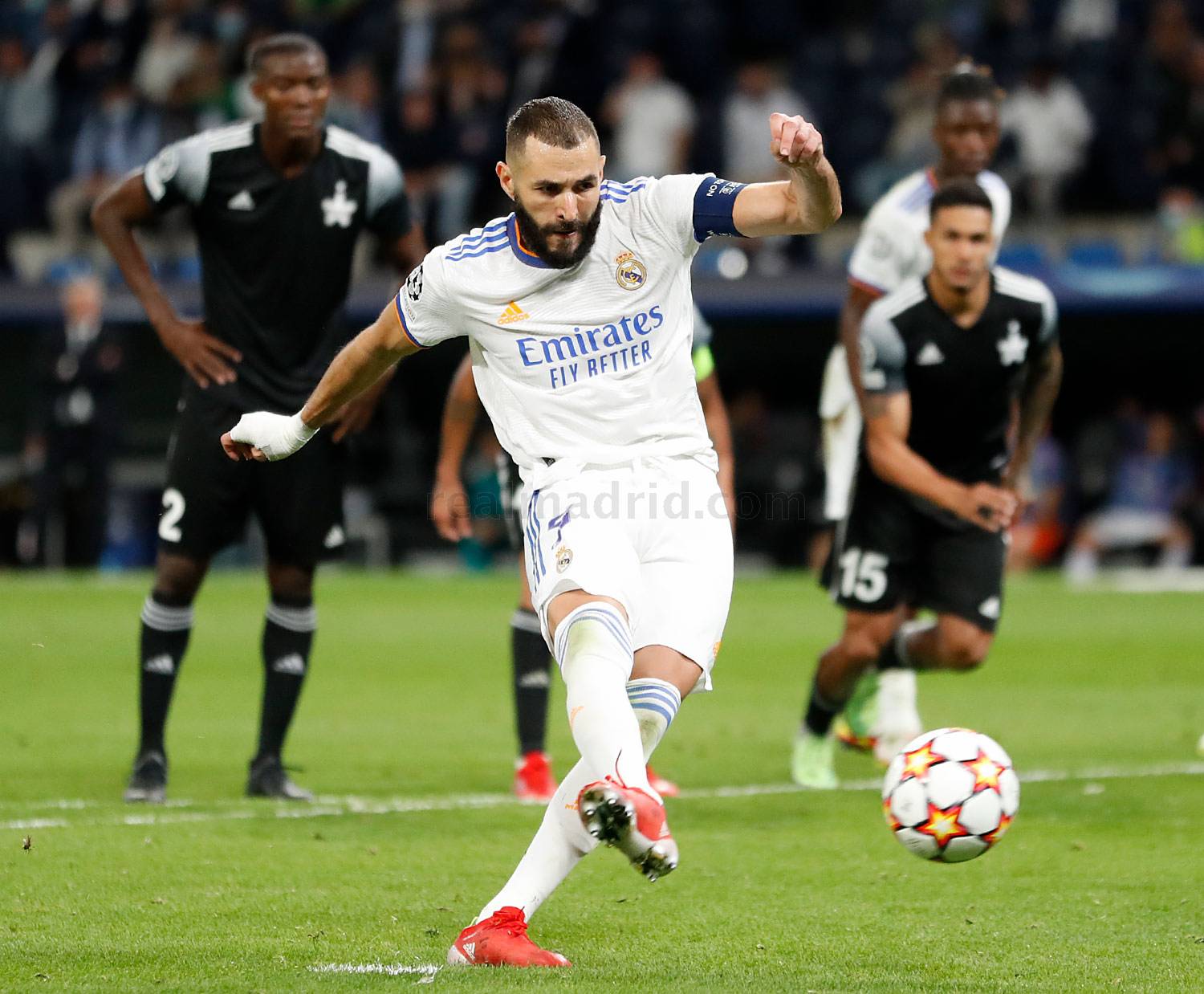 «Imagen. Benzema marcó el tercer gol del equipo y su quinto en la presente Champions. Fotografía Realmadrid.com»