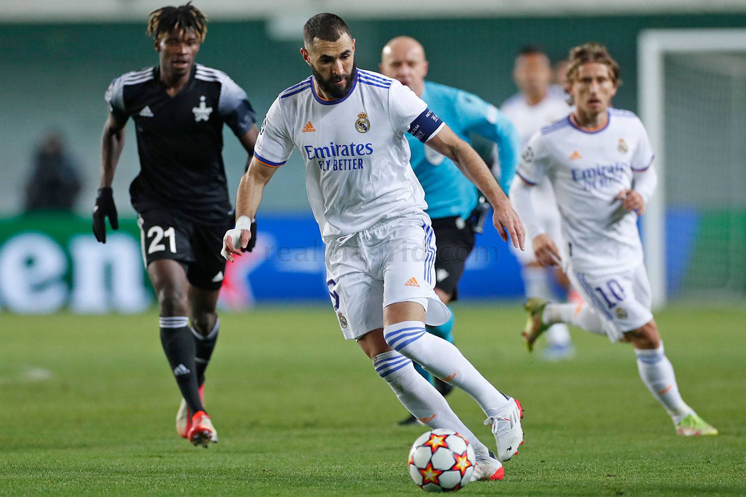 Tras el tiempo de descanso la pregunta era si los nuestros iban a entrar en una de esas desconexiones que nos complican los partidos, si el Sheriff sería más atrevido y haría un fútbol menos conservador o los nuestros irían a matar el partido. Y sucedió lo tercero. Otro viejo rockero que está como nunca ( lo justo sería decir como siempre ), aparecía para poner punto final al partido a falta de 35 minutos. Pase que recibe Benzema en la frontal del área y dispara para ponerla lejos del alcance de Athanasiadis y el 0-3 en el marcador.