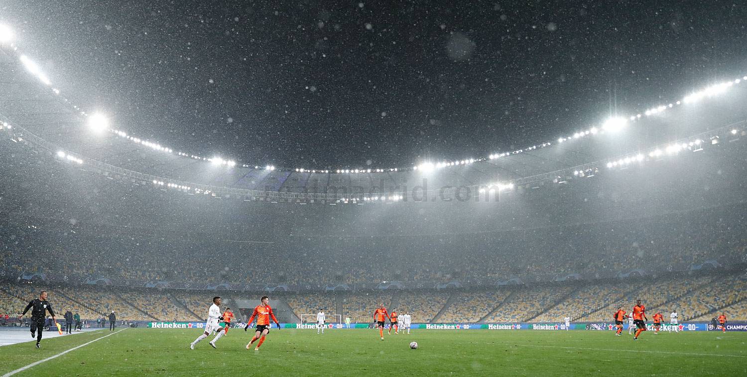 «Imagen. Plano del momento que nevó sobre el Olímpico de Kiev. Fotografía Realmadrid.com