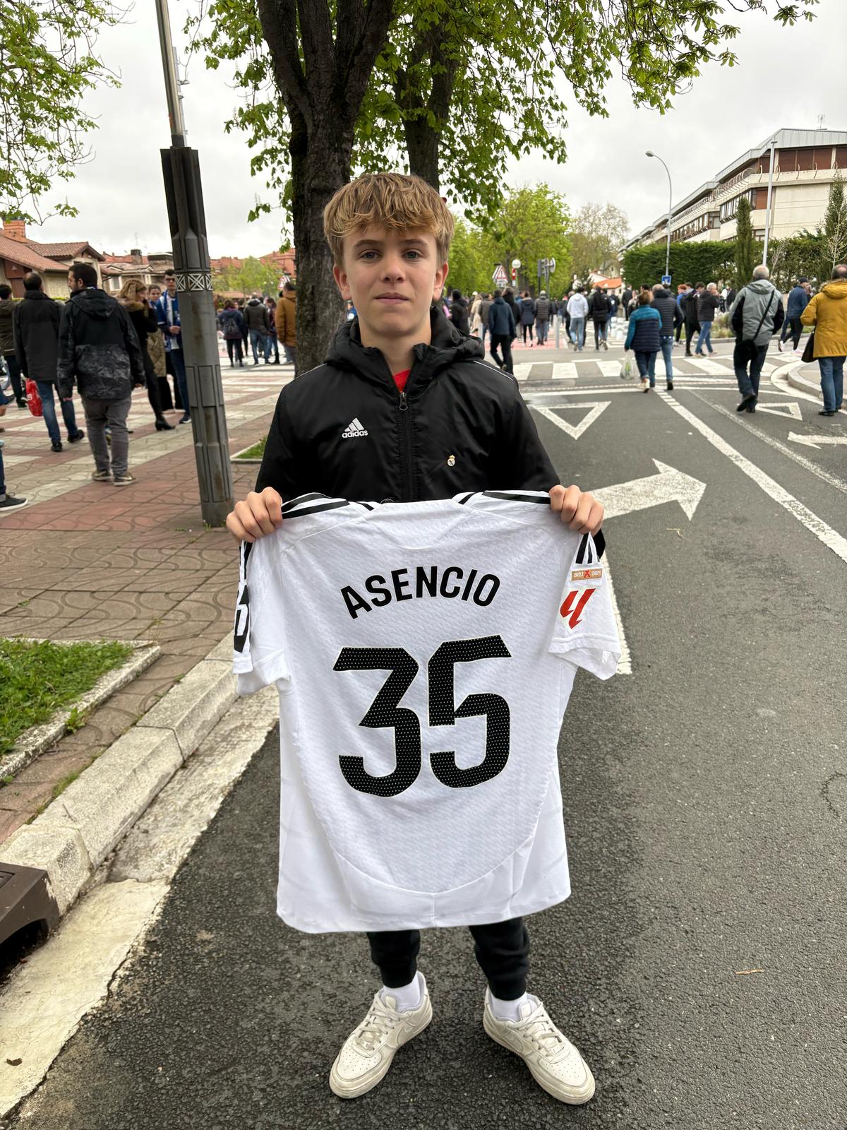 El domingo 13 de abril se desplazaba nuestro Real Madrid a Vitoria para enfrentarse al Deportivo Alavés en Mendizorroza. Los nuestros, en su pelea por revalidar el título de Liga no podía fallar. Al final, victoria por 0-1, gol de Camavinga y tres nuevos puntos para luchar por el campeonato. Pero la historia que nos ocupa se produjo al final del encuentro. Hasta Vitoria se habían desplazado varios socios de nuestra Gran Familia, y entre ellos uno de nuestros protagonistas, Jorge López (15 años), junto a su padre y otros familiares. Uno de los ídolos futbolísticos de Jorge, es nuestro segundo protagonista, Raúl Asencio. Jorge se había confeccionado una pancarta en cartulina con el fin de que el canterano le viera y al final del partido le regalase su camiseta. El resto de la historia la podéis encontrar en la entrevista que le realicé en el AVE camino a Sevilla para presenciar la final de Copa.