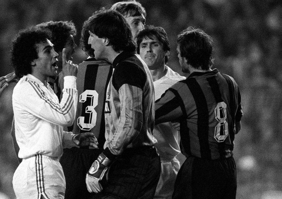 La aportación de Hugo Sánchez al equipo desde su llegada fue brutal, pero la figura de Carlos Santillana para los madridistas de un época era estar viendo a parte de lo mejor de la historia de nuestro club. Y el Inter le sufrió en más de una ocasión. Se llevaban tres minutos de la prórroga cuando un centro desde el córner ejecutado por Hugo para que Santillana con uno de sus testarazos marcase el gol que de momento metía al equipo en la segunda final consecutiva de la Copa de la UEFA. Y sería el propio Santillana quien de nuevo a pase de Hugo, pero esta vez con el pie, batiese a Zenga para marcar el 5-1 y dejar hundido a los interistas, que en el minuto 100 habían perdido a Mandorlina por roja directa consecuencia de una dura entrada sobre Gallego.