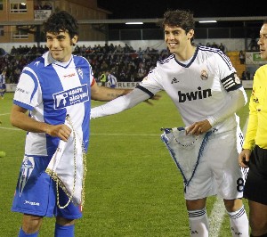 | Kaká, capitán en el día de ayer junto al capitán del Alcoyano fotografía marca.com |