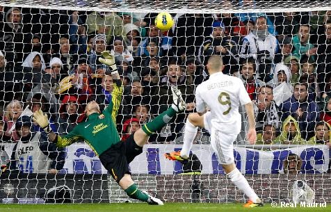 Empezó el partido de manera vibrante, con ambos equipos intentando dar lo mejor de si y buscando la portería rival. Pero sería el Madrid el que daría primero. Era el minuto 10 cuando Cristiano, tras recibir un magistral pase de Di María batía por bajo a Varas. Un Javi Varas que poco antes había evitado el primer gol madridista sacando con el pie un disparo de Benzema.