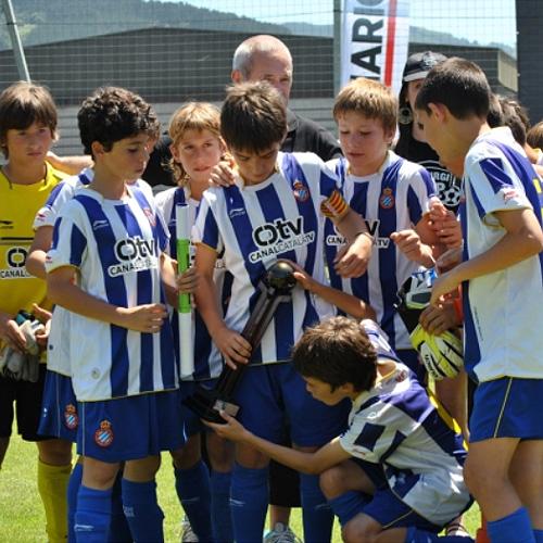 Los alevines del Español con el trofeo que les entrego el Sevilla