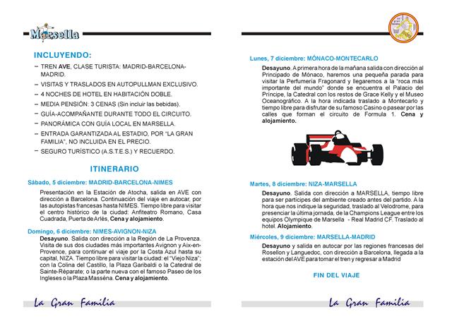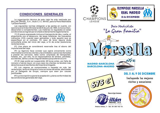 después de haber vuelto de pasa unos maravillosos días en nuestro viaje a presenciar el Milán-Real Madrid, recorriendo tierras italianas y suizas, ya esta en marcha el viaje a presenciar la cuarta jornada de Champions entre el Marsella y nuestro equipo.