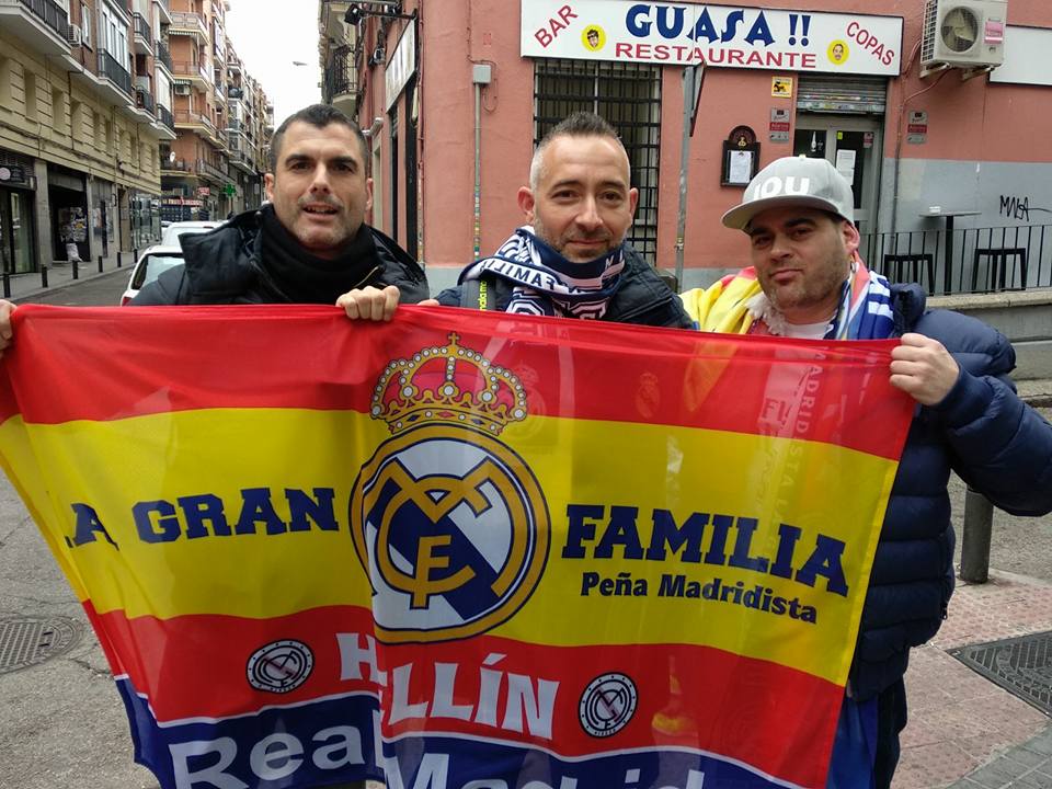Ahí siguen los hellineros, creciendo como sección de La Gran Familia y viajando siempre que pueden a apoyar a su Real Madrid. El pasado miércoles, 25 socios de nuestra sección de Hellín, encabezados por nuestro amigo Juan Antonio, se desplazaron a la capital para presenciar el partido de Copa de Europa frente al PSG. Tras comer en nuestra sede, en el Bar La Celadilla, recorrieron las calles que desde nuestra sede llegan al Santiago Bernabéu exhibiendo sus bufandas y banderas, y cantando apoyando al equipo. Luego el estadio, no dejaron de apoyar, y disfrutaron de una gran victoria merengue. Y tras el partido, vuelta a Hellín, llenos de alegría y pensando ya en el partido de vuelta, donde algunos de ellos estarán presentes en el Parque de los Principes.