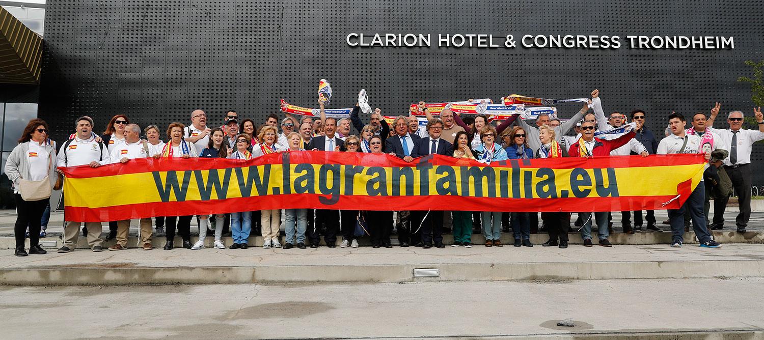 Ya en la localidad de Trondheim, en donde se disputa la final, el club ha tenido el detalle de obsequiar con una placa a la Peña Madridista de Noruega. Y allí estaba también nuestra Peña. Os dejo unas fotos y un vídeo que se ha publicado en la Web del Club.