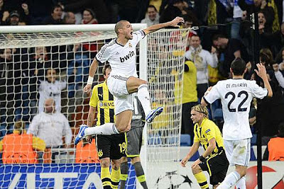 La primera ocasión medio clara para el Madrid llegaría en el 22, cuando un centro de Higuaín era rematado de cabeza por Cristiano, pero en un remate muy desacertado. La superioridad de los alemanes se puso de manifiesto en el minuto 28, cuando Reus entrando por la izquierda suelta un potente remate que se cuela por la escuadra. El 0-1 hacia justicia al mejor juego del Borussia.