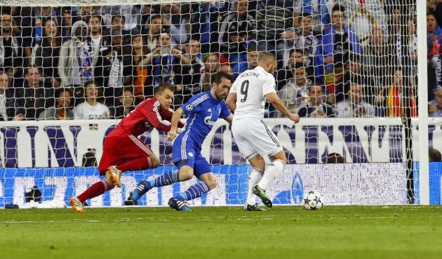 Con un equipo bien ordenado y con una defensa poblada, los alemanes esperaban a los merengues en su campo esperando sorprender a la contra. El Madrid tocaba de inicio, pero quitando una ocasión de Benzema en el minuto 5 que desbarataba Matip, el Madrid apenas creaba peligro serio sobre la meta de Wellenreuther. El Schalke daba respuesta con un peligroso disparo de Choupo-Moting tras dejada de Meyer.