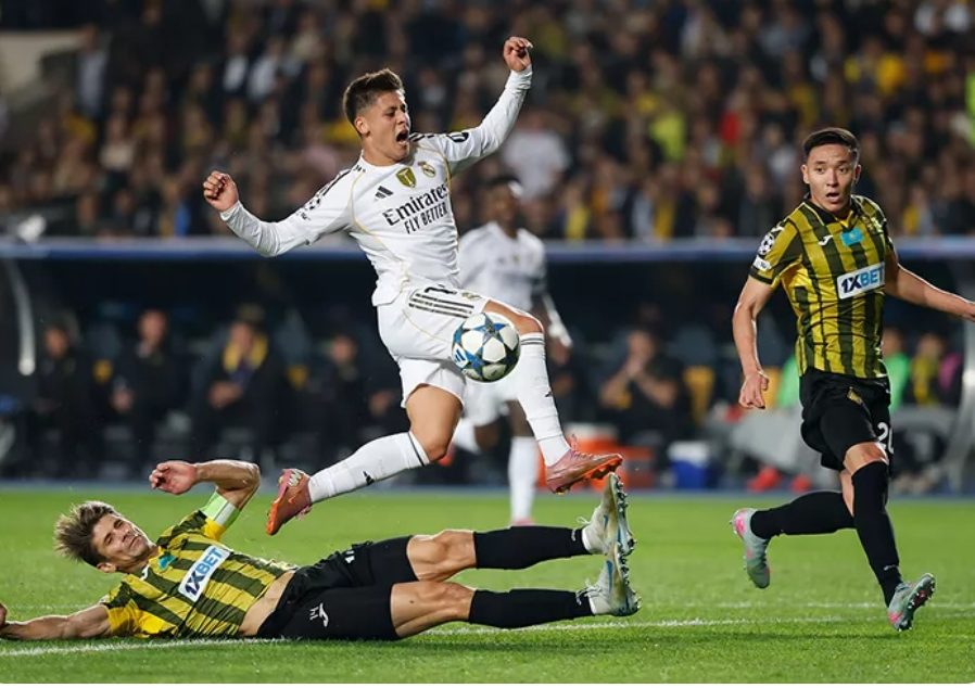 Rondaba el gol el Madrid, y en el minuto 23 Kamyrza se llevaba por delante a Mastantuono, el árbitro no dudó y señaló la pena máxima, Mbappé engañó al portero kazajo y puso el uno a cero en el marcador haciendo justicia con los méritos de uno y otro equipo.