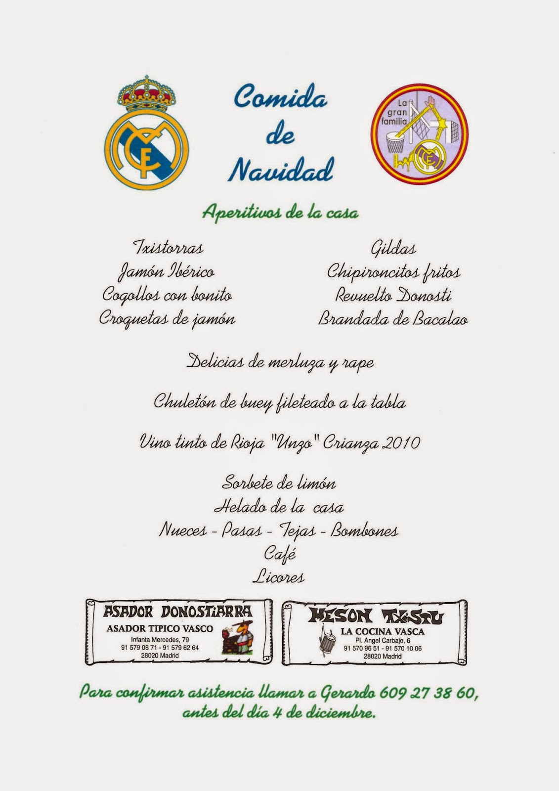 Se acercan las Navidades, y con ellas nuestra tradicional Comida de Navidad. Éste año con motivo del Mundial de Clubes en el que participa nuestro Real Madrid, la comida se adelanta un poco a lo que suele ser habitual.