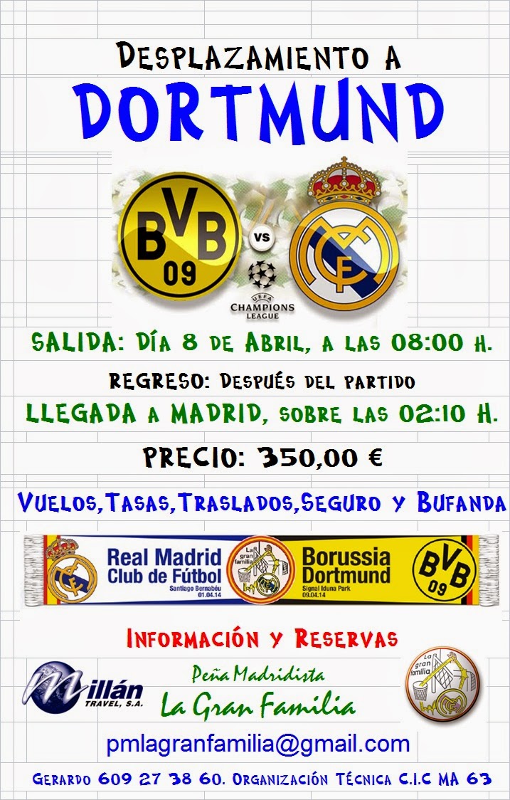 Nuestro Real Madrid nos da la posibilidad de disfrutar de una eliminatoria de la Champions League, en este caso en Dortmund. El estadio Signal Iduna Park nos espera para repetir la hazaña de Gelsenkirchen contra el Schalke 04 y resarcirnos de la derrota del año pasado.
