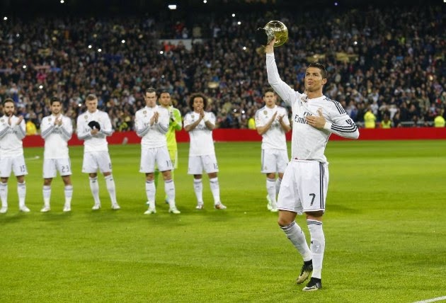 Cristiano ofrece el Balón de Oro al publico antes del partido. fotografía marca.com |