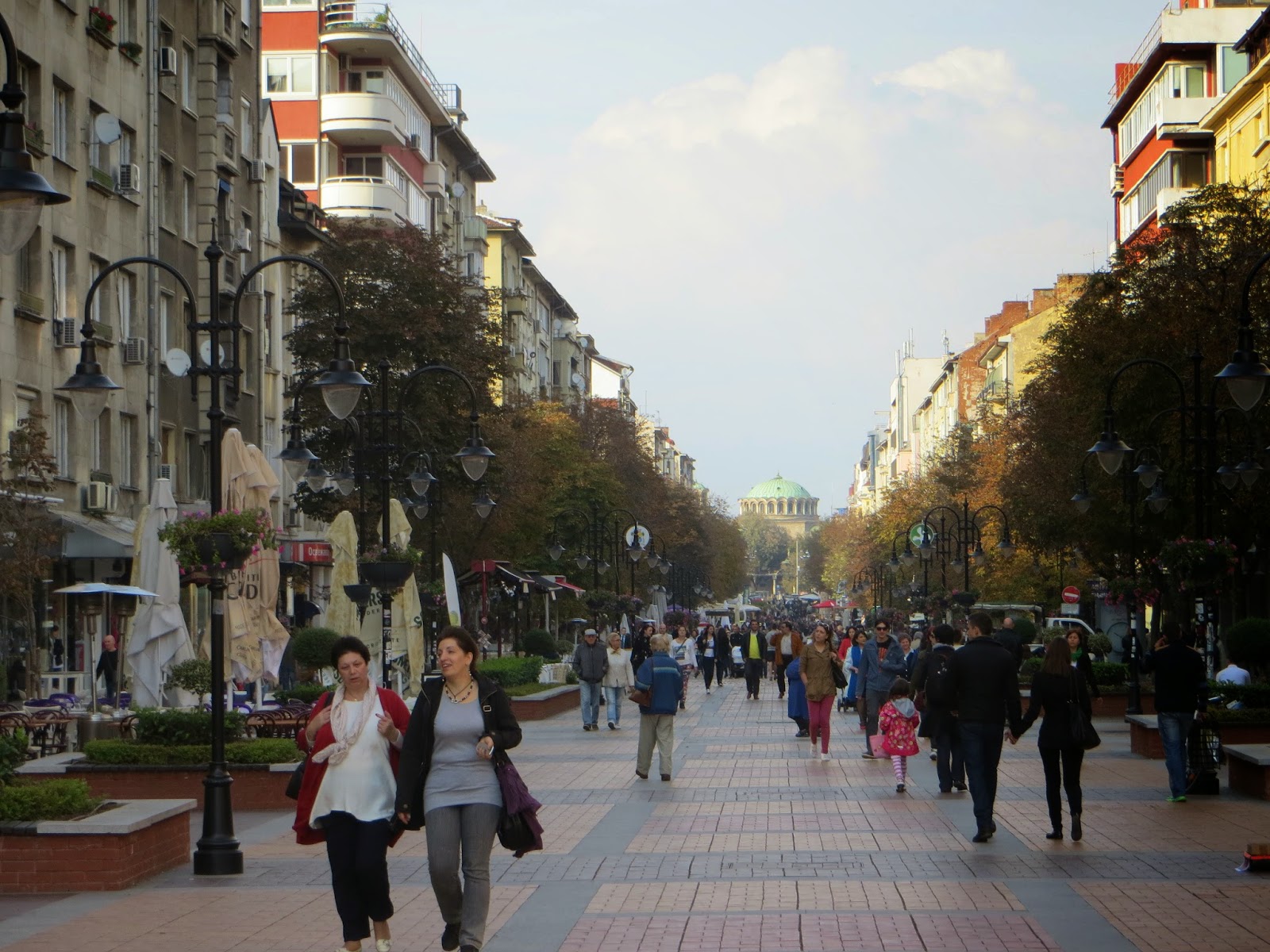 Hemos podido realizar ambas cosas, de camino hemos visto la iglesia de Sveta Nedelya, templo ortodoxo con rango de catedral; el Palacio de Justicia y a partir de aquí hemos disfrutado de la calle peatonal Victoria, las mejores tiendas e innumerables cafés, mezclan un montón de personajes llenando de colorido toda la avenida. Para finalizar el Palacio Nacional de la Cultura y llegada al hotel para arreglarnos y salir a cenar.